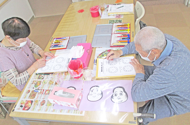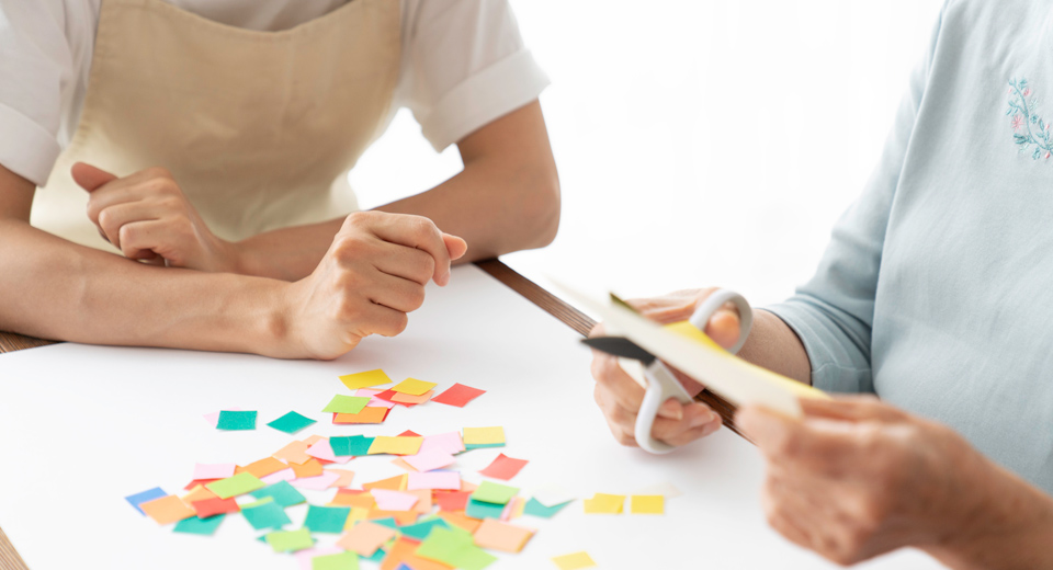 書字・塗り絵などの創作や計算といった脳(認知機能)を使う基本トレーニングを通して、作業療法士が個々の認知機能に合わせたアプローチを行い、機能の維持・改善を促します。